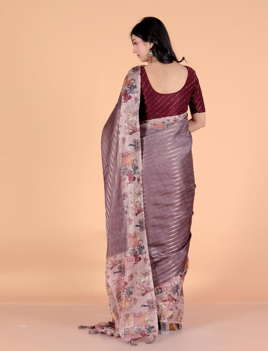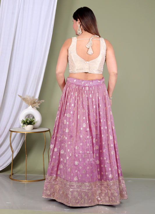 TISSUE ZARI WEAVING SEQUENCE WORK BORDER LAVENDER LEHNGA ...