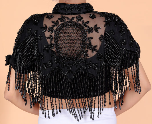 NET BEADS WORK CAPE PATTERN BLACK BLOUSE BY SKFBHOLUBHAI