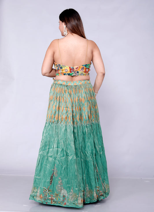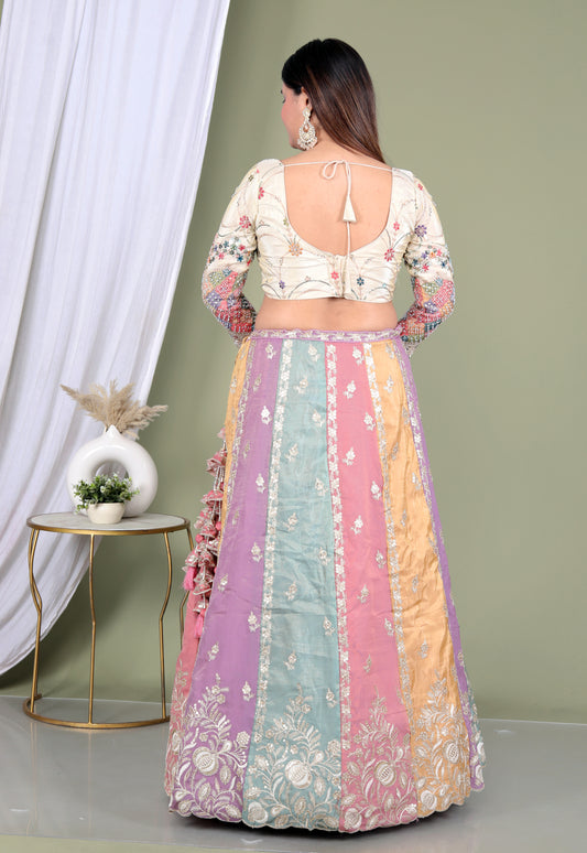 TISSUE ZARI EMBROIDERY WORK MULTICOLOUR LEHNGA BY SKFBHOL...