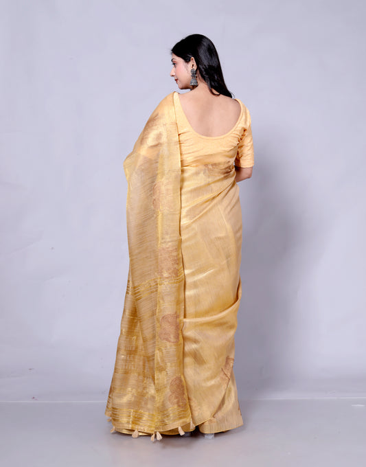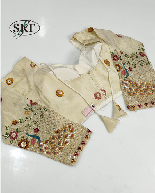 TISSUE EMBROIDERY SEQUENCE GOLDEN IVORY BLOUSE BY SKFBHOL...