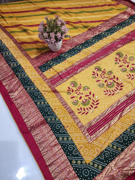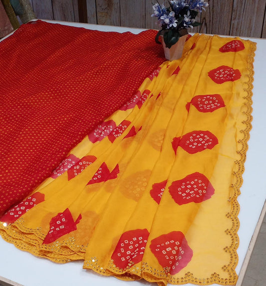 FESTIVAL SPECIAL BANDHEJ SAREE WITH PITTEN WORK BY SKFBHO...