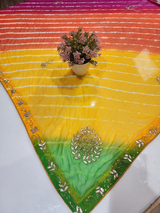 GEORGETTE 30×30 LEHRIYA KUNDAN HANDWORK MULTICOLOUR SAREE...