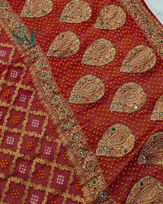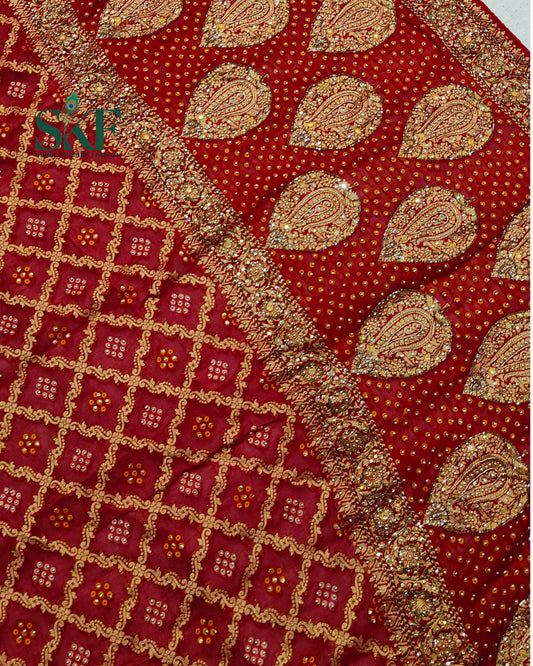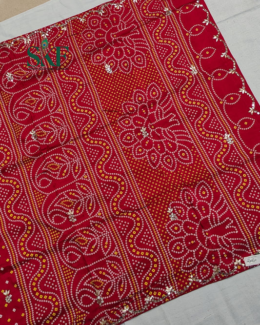 MODAL SILK BHANDHANI HANDWORK BUTTA RED SAREE BY SKFBHOLU...