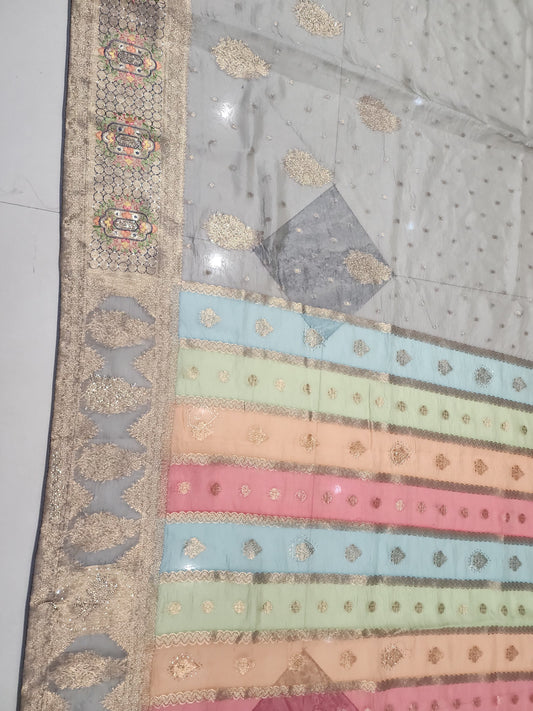 DIAMOND CHIFFON PACHRANGA LATEST LEHRIYA GOTTA HANDWORK S...