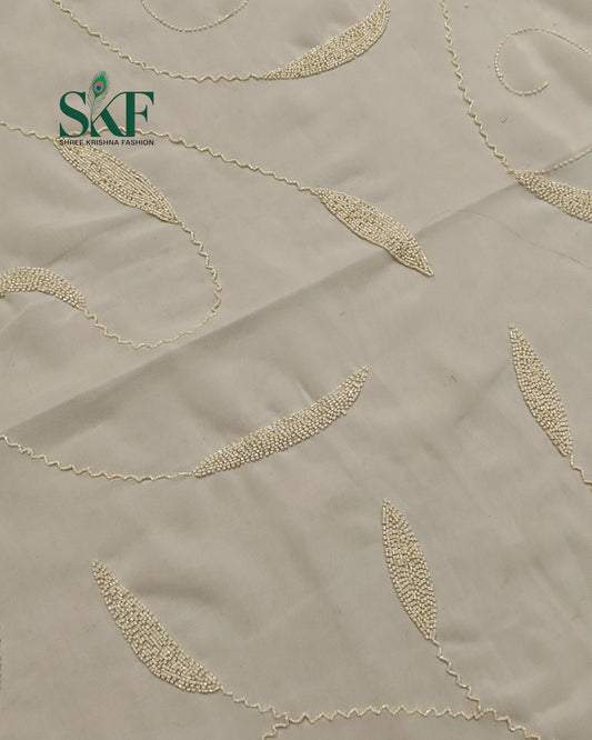 GEORGETTE KARDANA BEADS JAAL HANDWORK IVORY SAREE BY SKFB...