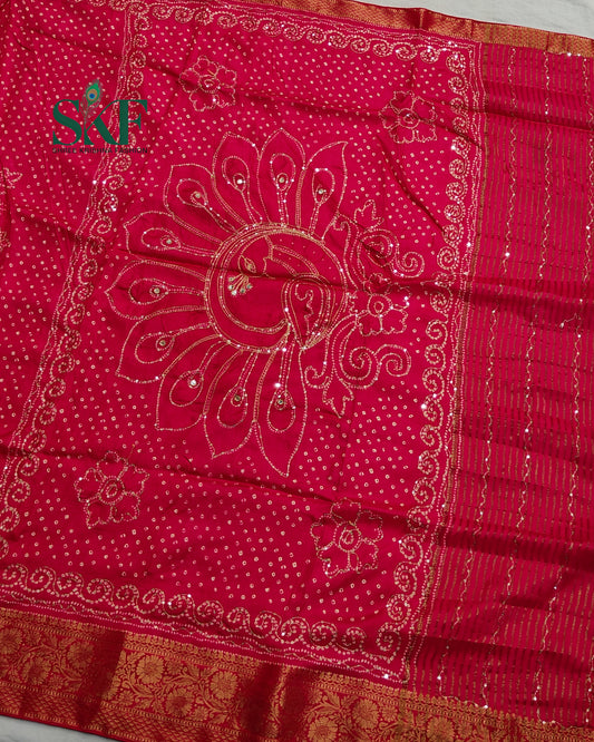 GEORGETTE MODHA LEHRIYA GOTTAPATTI WORK RANIPINK SAREE BY...