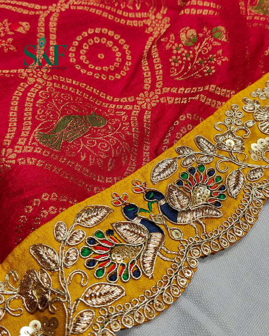 DOLA BANARSI WEAVING BHANDHANI HEAVY WORK BORDER RED SAR...