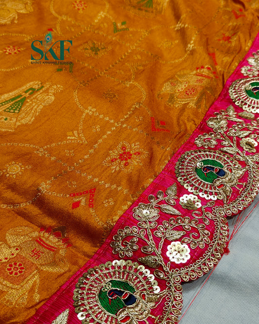 DOLA BANARSI MOTIF WEAVING HEAVY WORK BORDER YELLOW MUSTU...