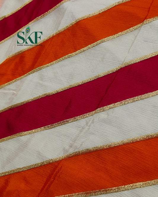 DIAMOND CHIFFON PACHRANGA LATEST LEHRIYA GOTTA HANDWORK S...