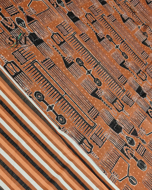 CHANDERI COTTON BRUSH PRINT KHATHA WORK BROWN SAREE BY SK...