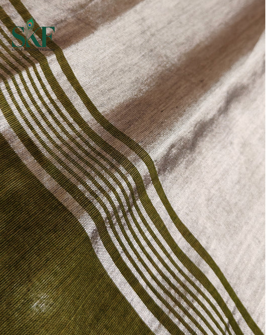 COTTON PLAIN WEAVING PALLU BOTTLEGREEN & SILVER SAREE...