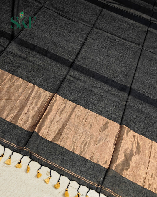 COTTON PLAIN WEAVING PALLU BLACK & BRONZE SAREE BY SK...