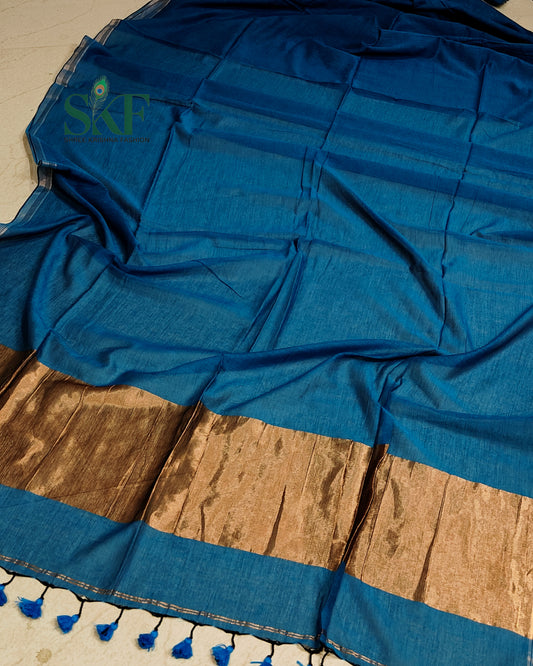 COTTON PLAIN WEAVING PALLU TEALBLUE & BRONZE SAREE BY...