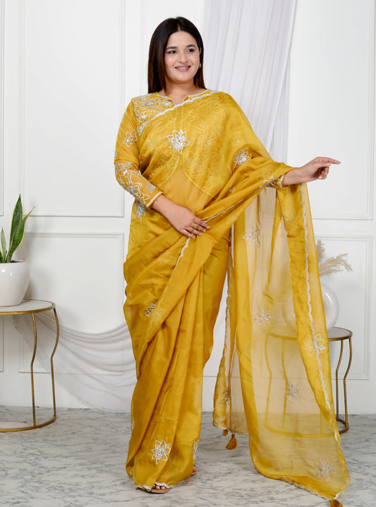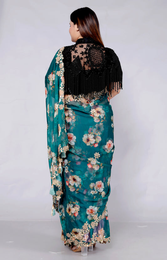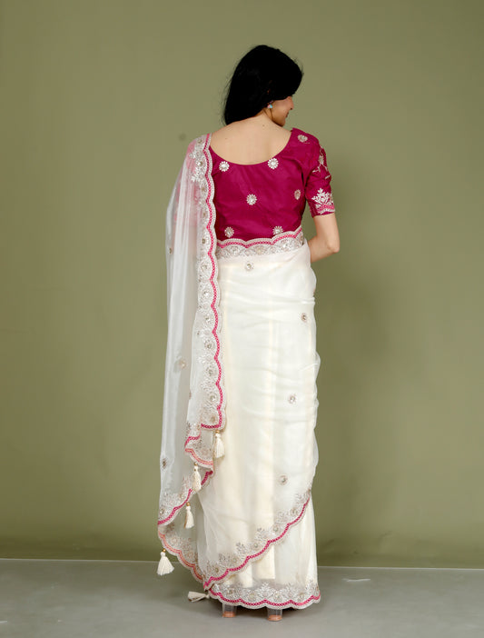 PURE ORGANZA EMBROIDERY JACKET STYLE SAREE