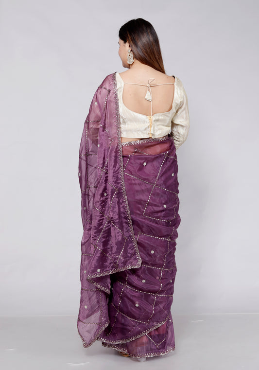 FOIL ORGANZA GOTTA HANDWORK JAAL PURPLE SAREE BY SKFBHOLU...