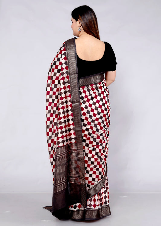 OPADA SILK CHECK PATTERN WEAVING MULTICOLOUR SAREE BY SKF...