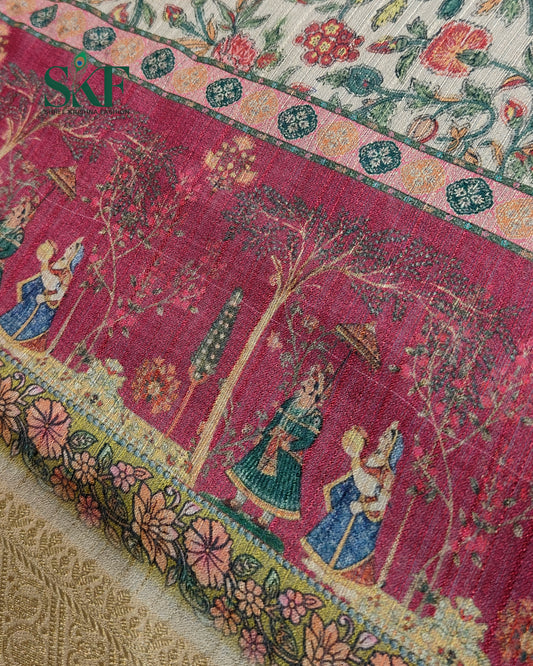 MAURA SILK PATOLA FOIL PRINT WEAVING IVORY SAREE BY SKFBH...
