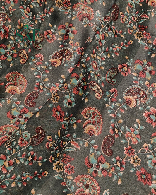 MARBLE GEORGETTE FLORAL PRINT DAILYWEAR CHARCOAL GREY SAR...