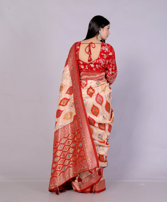 GAJJI SILK BHANDHANI GOTTAWORK RED SAREE BY SKFBHOLUBHAI