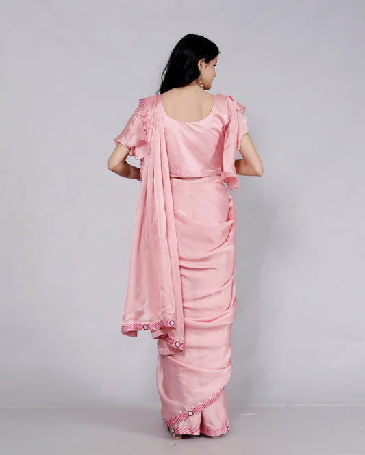 HO SILK EMBROIDERY BORDER STICH BLOUSE PINK SAREE BY SKFB...