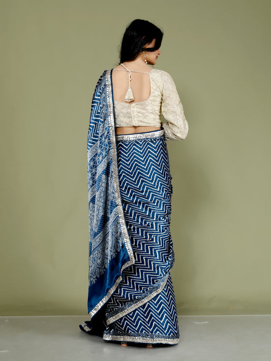 GAJJI SILK LEHRIYA GOTTAWORK BLUE SAREE BY SKFBHOLUBHAI