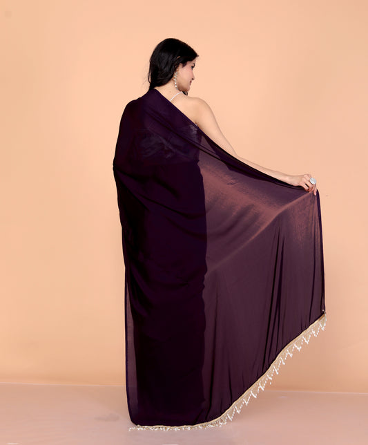 CREPE PLAIN TASSELS WORK PURPLE SAREE BY SKFBHOLUBHAI