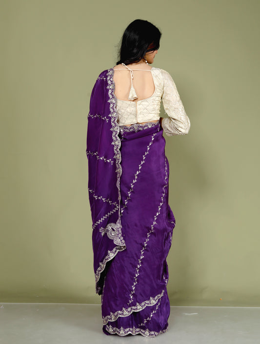 HO SILK ZARI SEQUENCE EMBROIDERY RICH PURPLE SAREE BY SKF...
