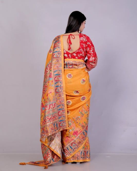 JAMDHANI SILK MULTI WEAVING ORANGE SAREE BY SKFBHOLUBHAI