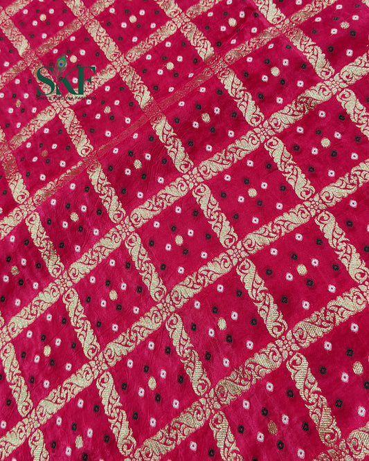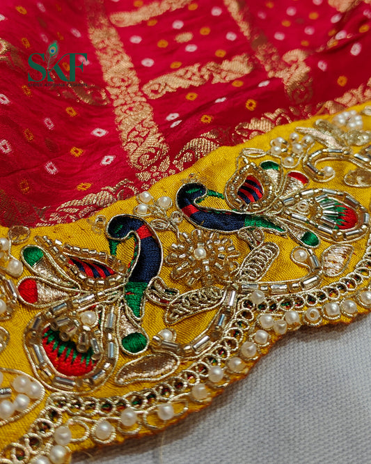 DOLA BANARSI WEAVING BHANDHANI HEAVY WORK BORDER RED SAR...
