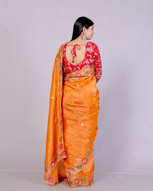 HO SILK HAND PAINTED ZARI EMBROIDERY ORANGE SAREE BY SKFB...