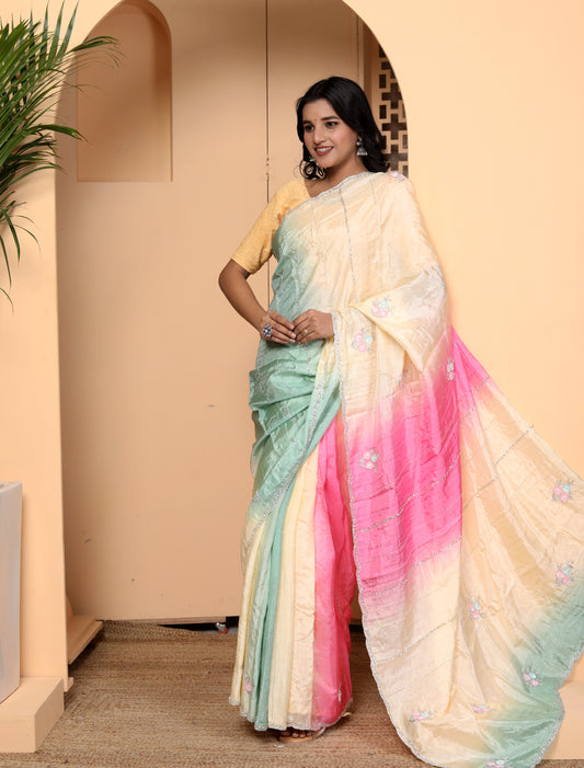 50% OFFJAIPURI PITTEN WORK OMBRE SAREE