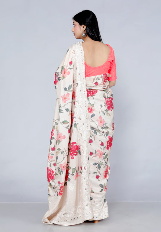 JAIPURI TIEDYE HANDWORK BORDER SAREE