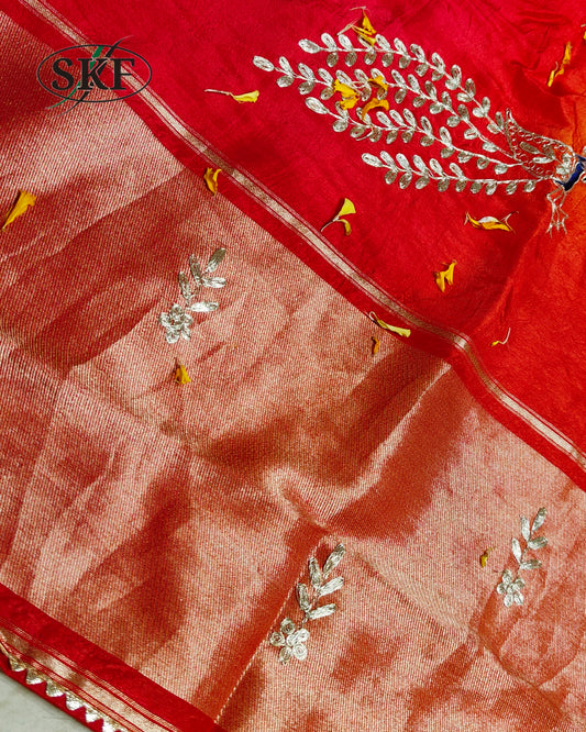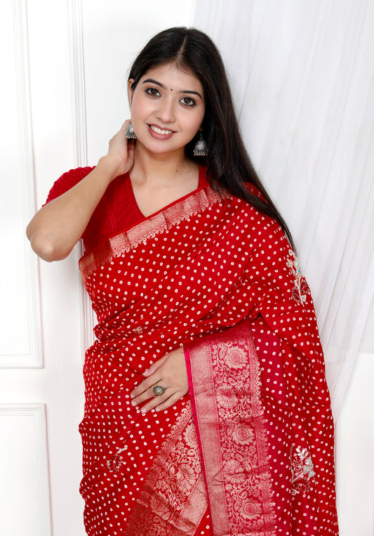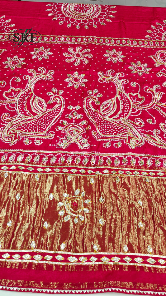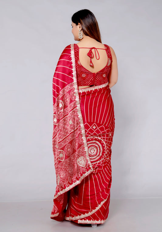 GAJJI SILK BHANDHANI GOTTAWORK RED SAREE BY SKFBHOLUBHAI