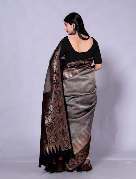 HANDLOOM SILK GOLD WEAVING BLACK SAREE BY SKFBHOLUBHAI