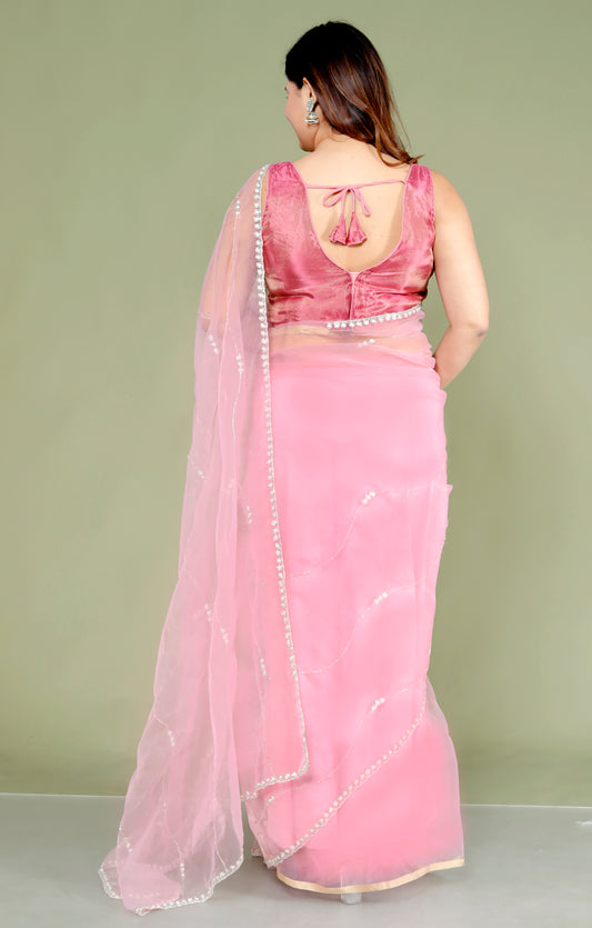 HO SILK GOTTA HAND PEARL WORK ONION PINK SAREE BY SKFBHOL...