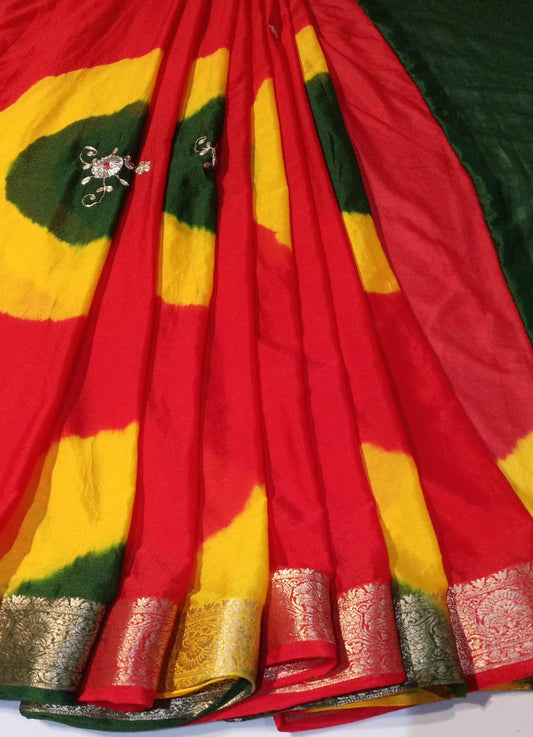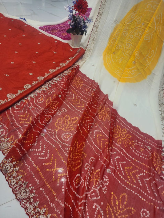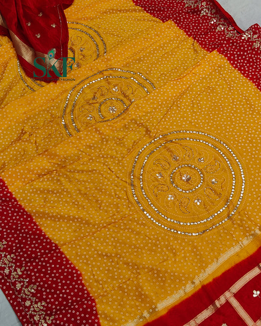 RUSSIAN SILK CHAKRA BHANDHANI GOTTA HANDWORK RED&YELL...