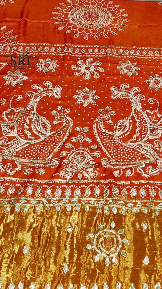 GAJJI SILK KACHA GOTTA CHAKRA BHANDHANI BORDER WORK ORANG...