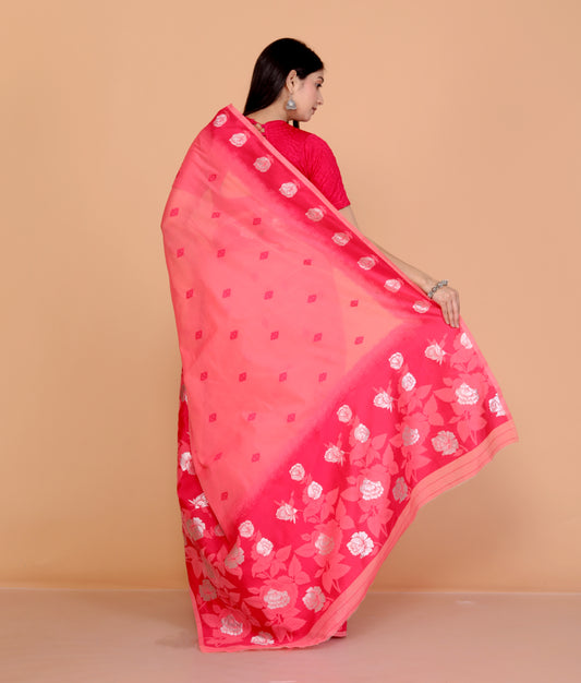 COTTON BLEND WEAVING RED PINK SAREE BY SKFBHOLUBHAI