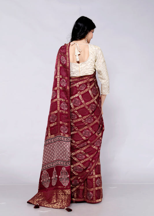 GAJJI SILK GHATCHOLA ZARI WEAVING MEHROON SAREE BY SKFBHO...