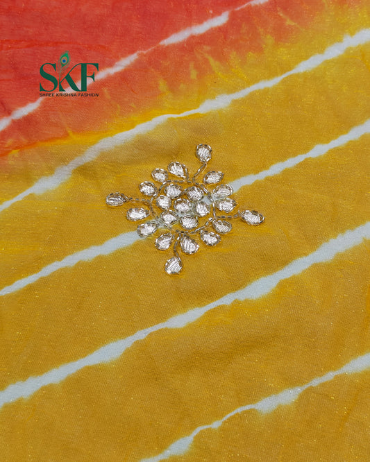 DIAMOND CHIFFON PACHRANGA LEHRIYA GOTTA HANDWORK SAREE BY...