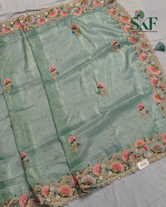 CRUSH TISSUE SIPPI SEQUENCE EMBROIDERY WORK SEEGREEN SARE...