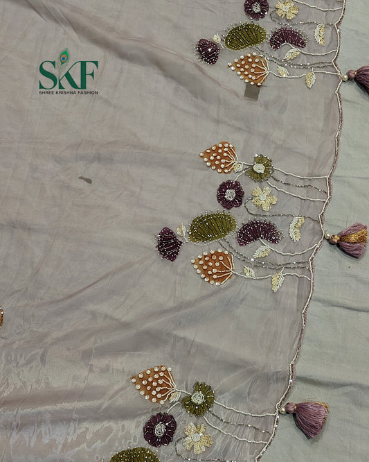 Roopgatha Pure Tissue Hanging Pearl Border Saree