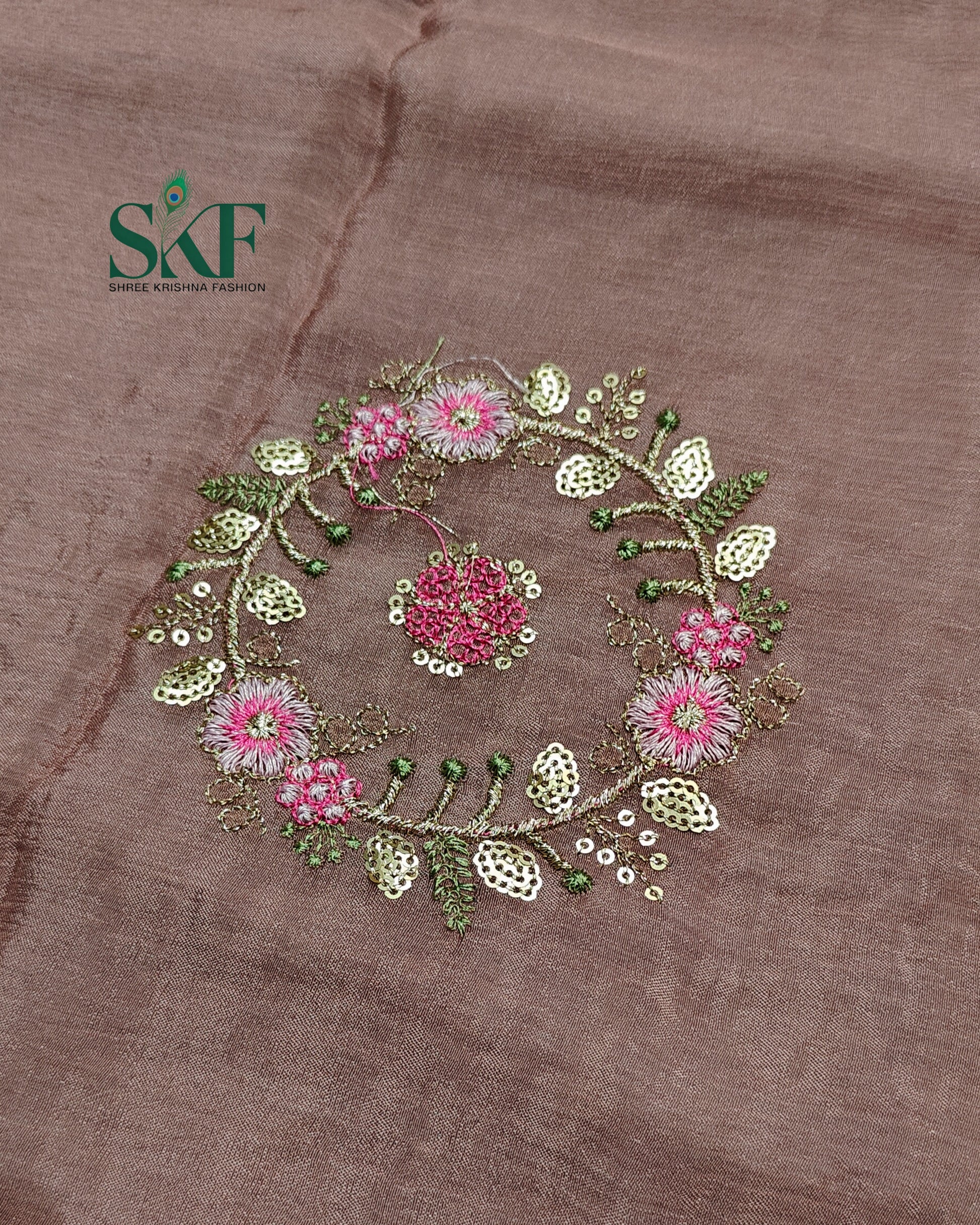 Pattern: Elegant embroidery and sequin design throughout the saree