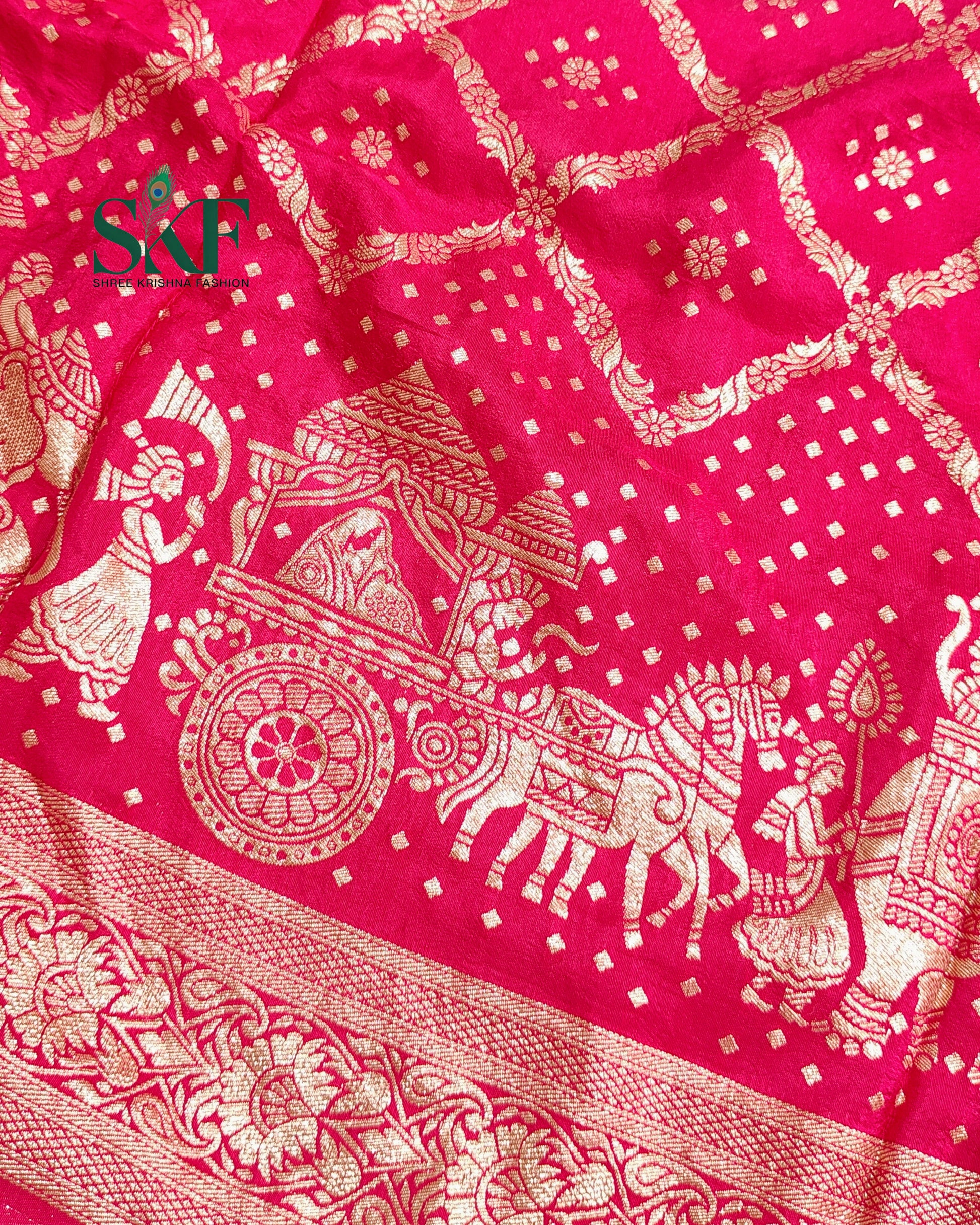 DOLA SILK MOTIF JAAL WEAVING WORK RANIPINK SAREE BY SKFBHOLUBHAI