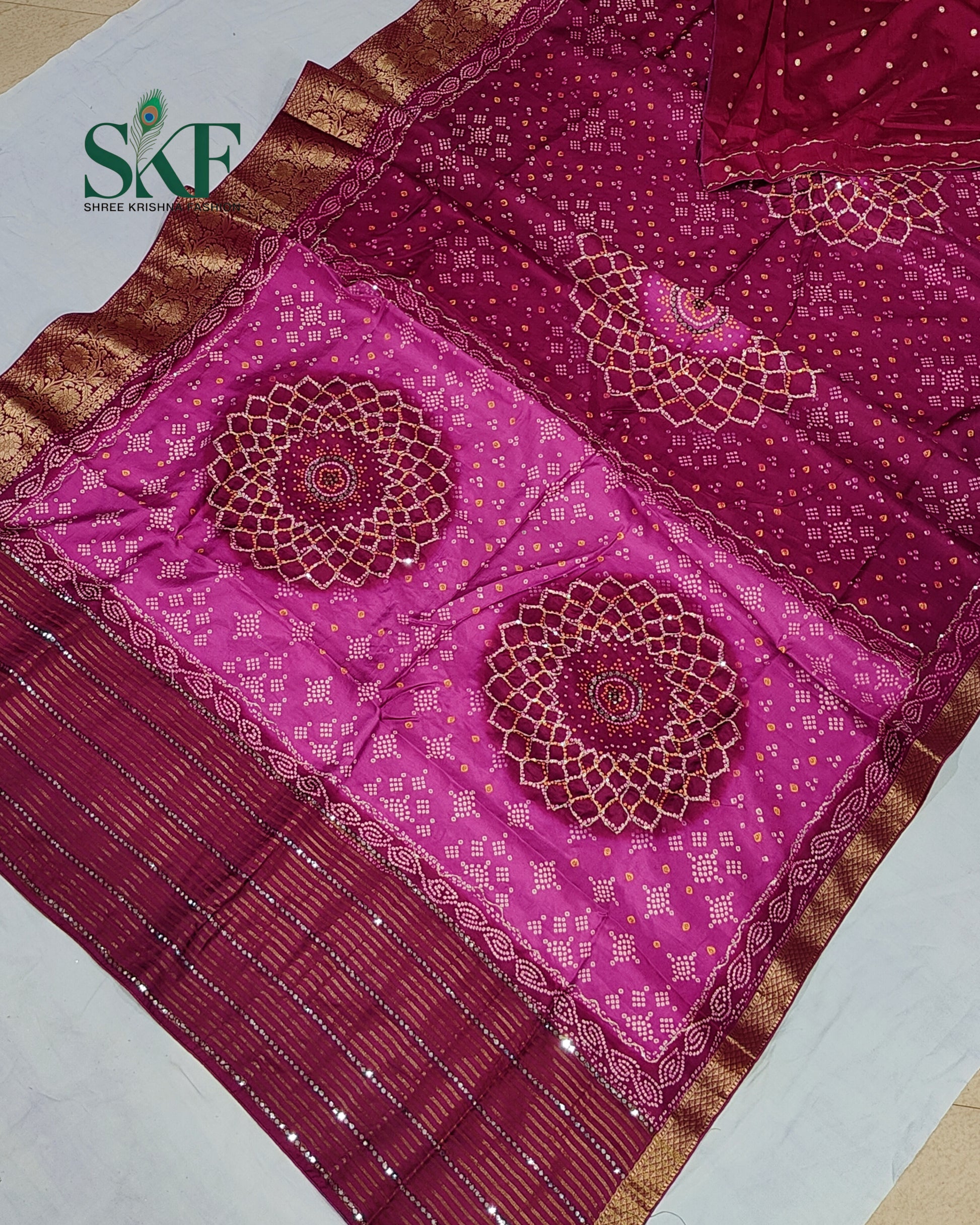 HO SILK BHANDHANI MIRROR WORK TWO TONE PURPLE AND WINE SAREE BY SKFBHOLUBHAI