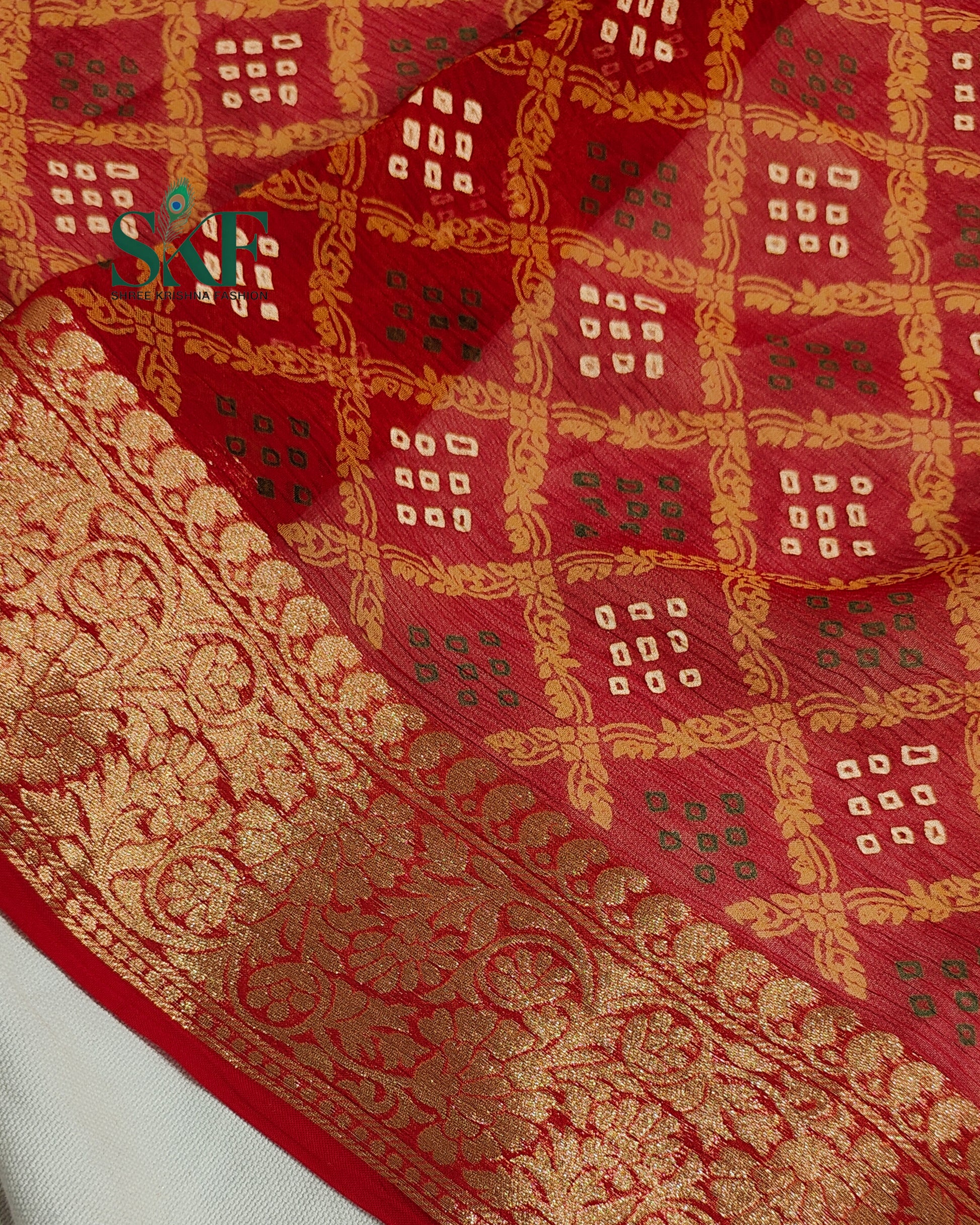 Pattern: Classic Jaipur-Style Khadi Zari Weaving with All-Over Bandhani Print