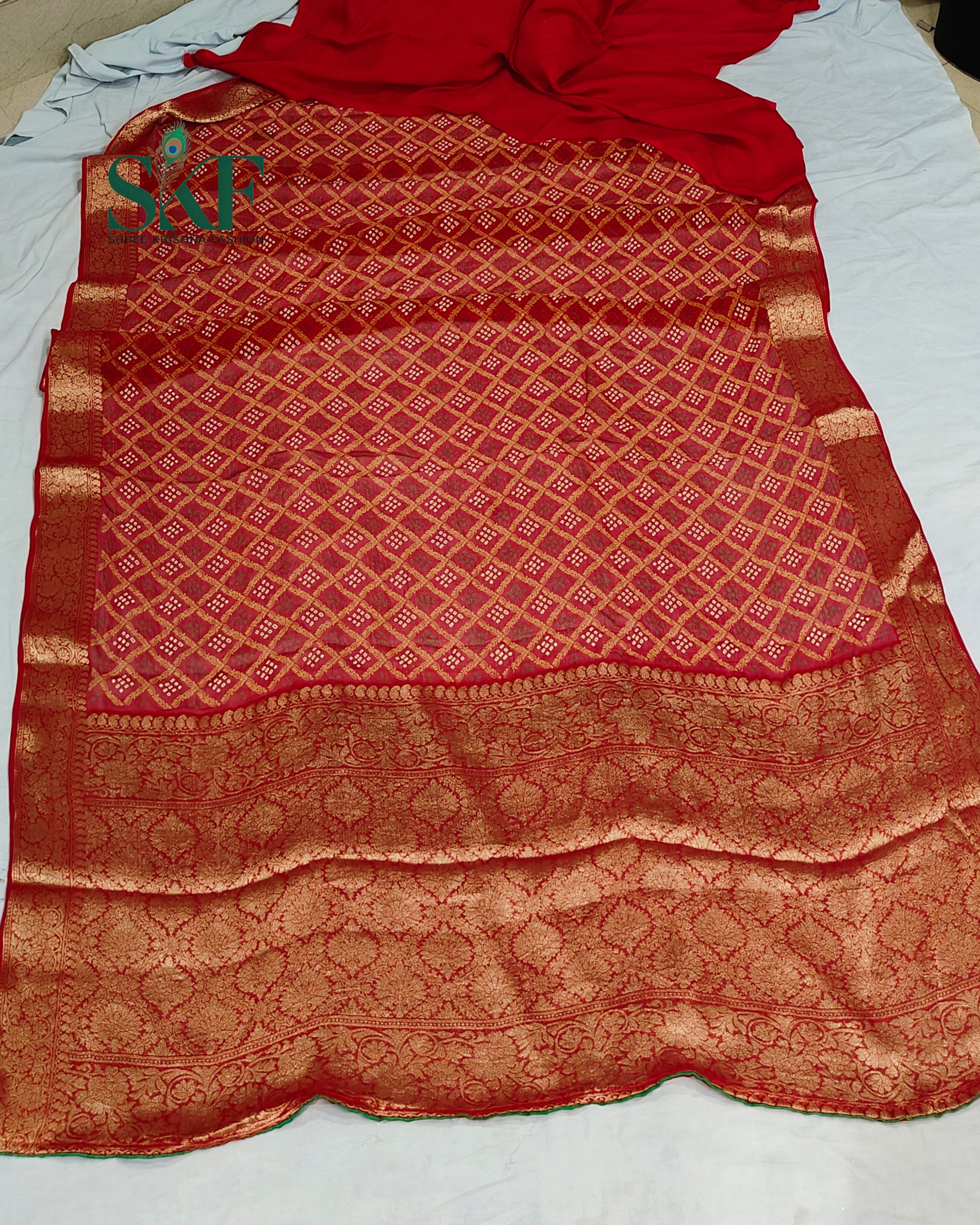 Look & Feel: A graceful fusion of Jaipur heritage and timeless Bandhani art โ lightweight, festive, and perfect for cultural functions, weddings, or poojas.