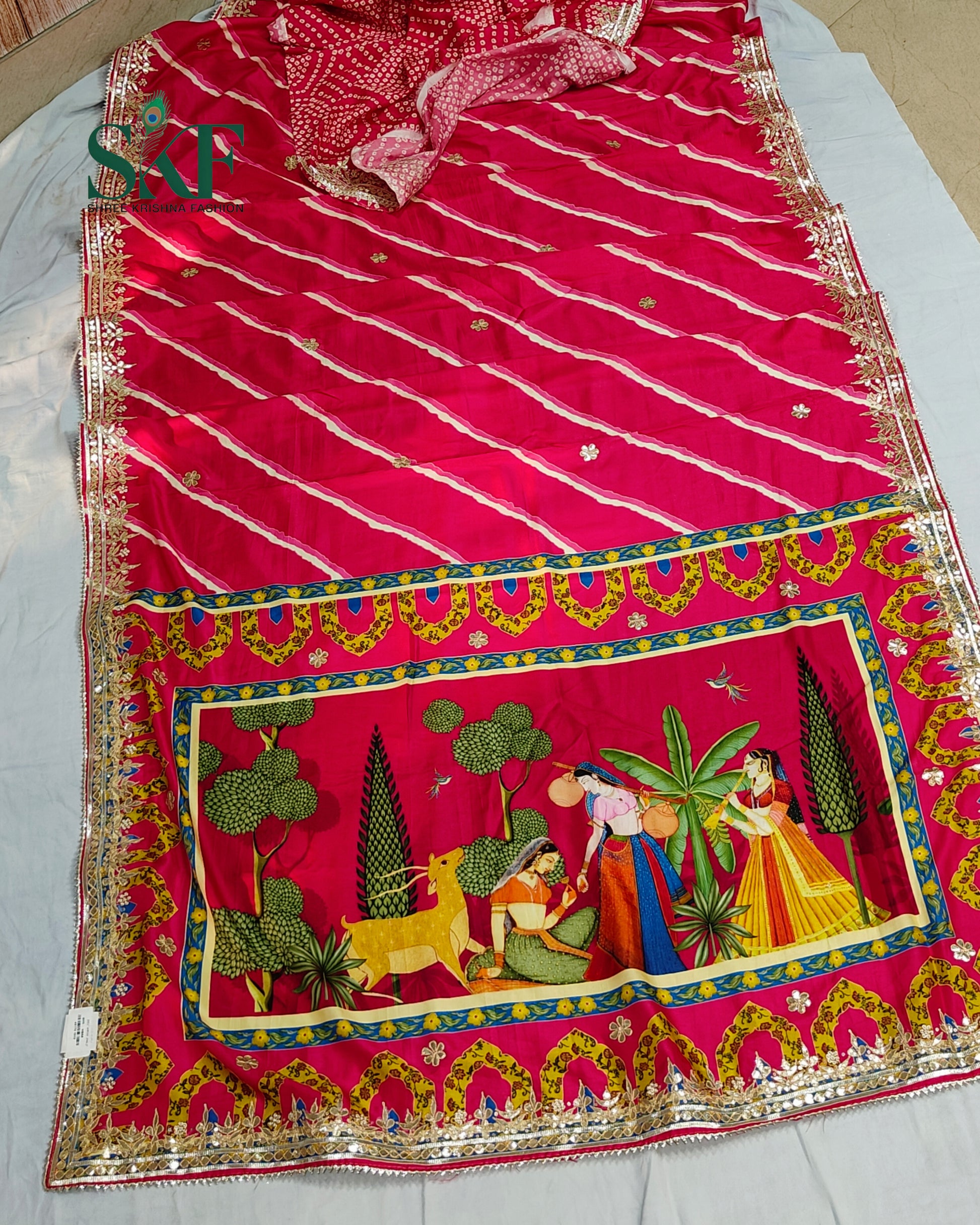 Look & Feel: A premium traditional masterpiece with pure craftsmanship β perfect for weddings, festive poojas, and grand celebrations. Combines the charm of Rajasthani leheriya with exclusive handwork.