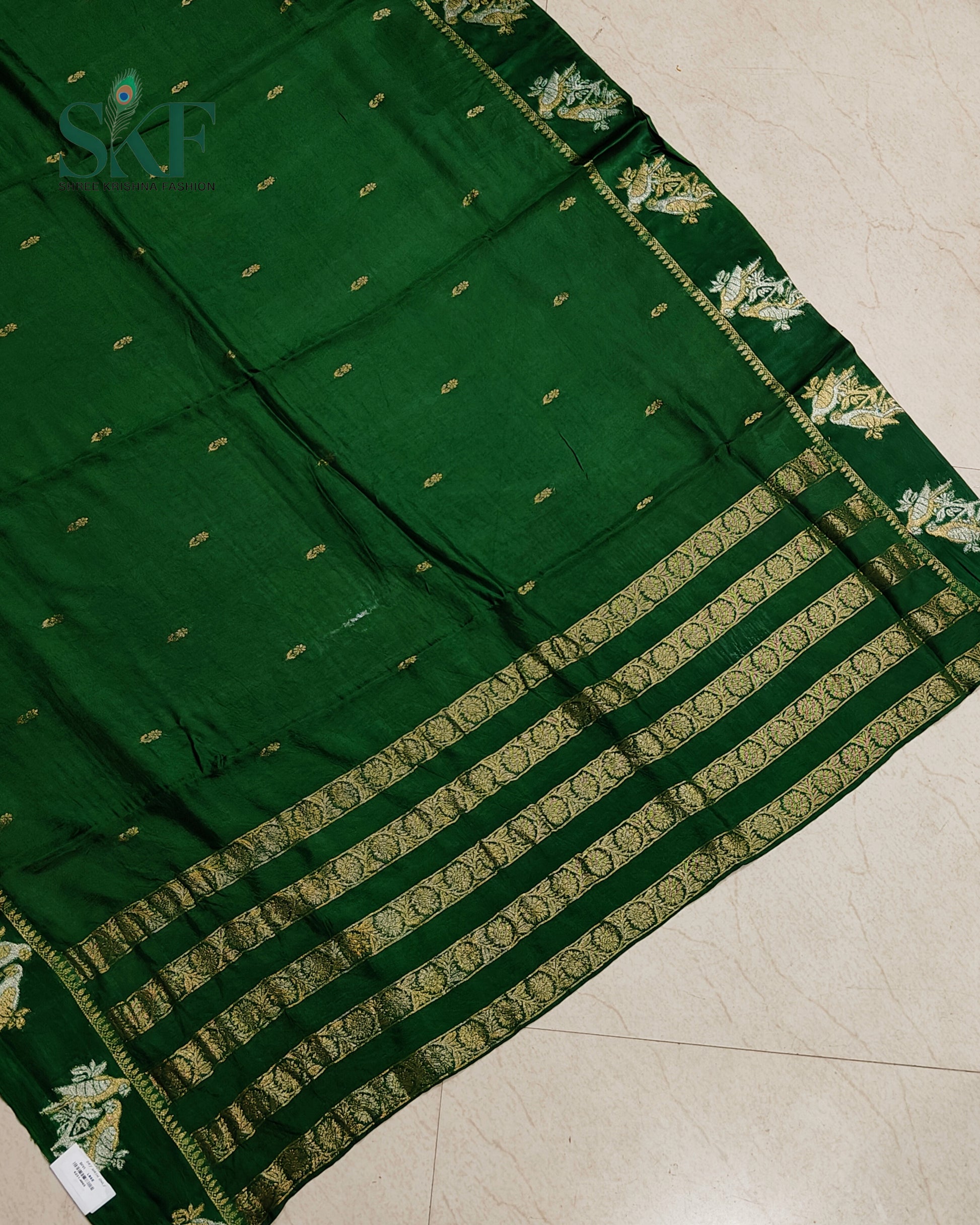 HO SILK PARROT BORDER ZARI BUTTY WEAVING WORK BOTTLE GREEN SAREE BY SKFBHOLUBHAI