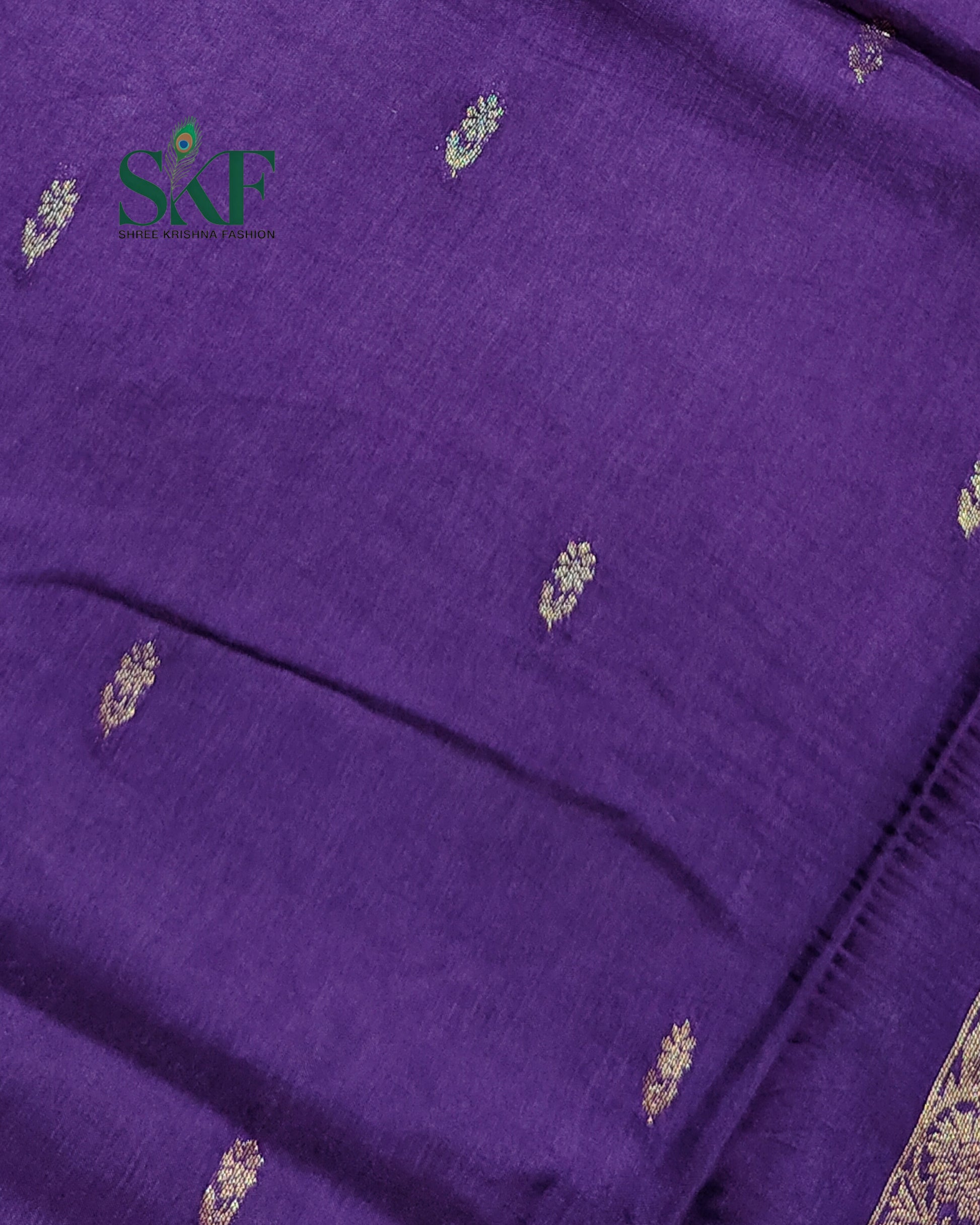 HO SILK PARROT BORDER ZARI BUTTY WEAVING WORK BRINJAL PURPLE SAREE BY SKFBHOLUBHAI